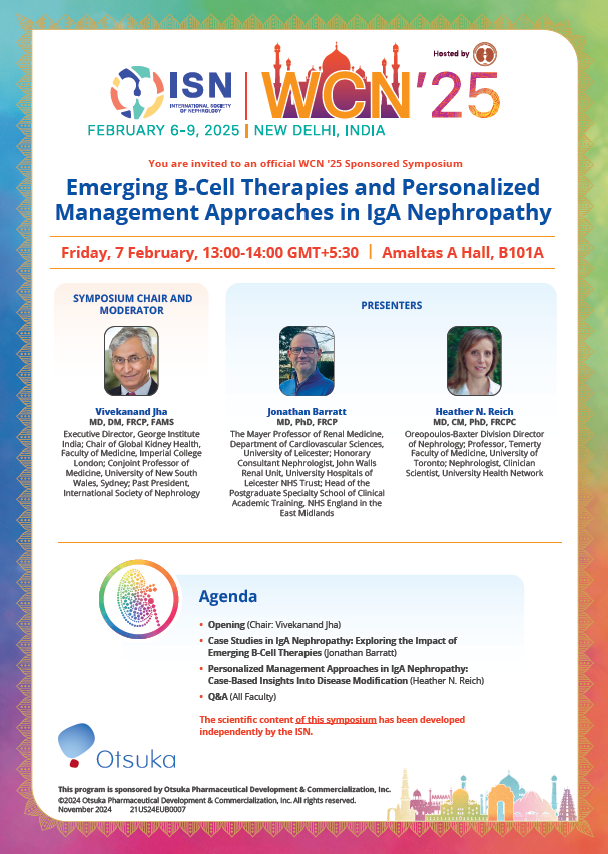 The ISN World Congress of Nephrology, New Delhi, India, 06/02/2025 – 09/02/2025 has been accredited by the European Accreditation Council for Continuing Medical Education (EACCME®) with 15.5 European CME credits (ECMEC®s).
