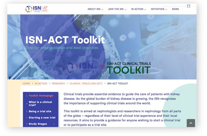 The ISN Advancing Clinical Trials Toolkit is designed to assist in carrying out meaningful and robust clinical trials, or to become involved as a trial site, with the primary intention of improving patient care.