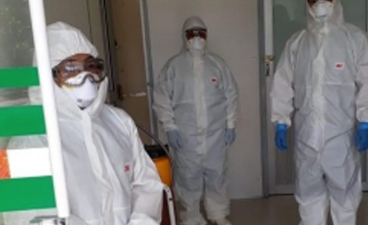 Healthcare workers at the main entrance to Hospital Obrero #2, Cochabamba, Bolivia