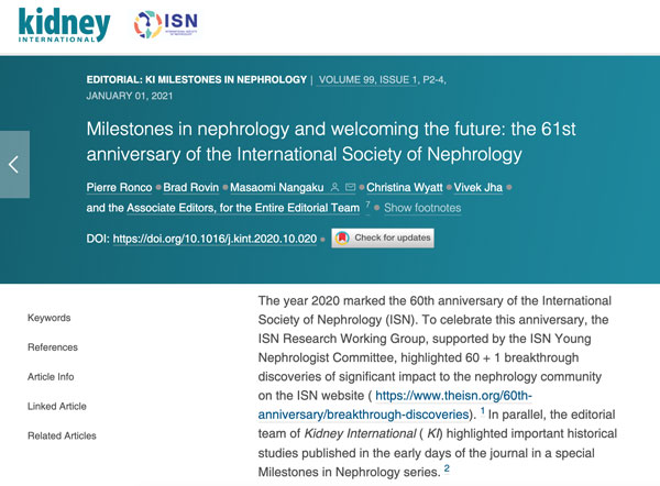Milestones in nephrology and welcoming the future: the 61st anniversary of the International Society of Nephrology ” has been published in Kidney International.
