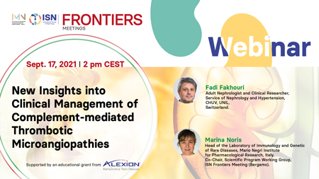 | The webinar supports the ISN Frontiers Meeting “Complement-related Kidney Diseases: Classification, Genetics, and Treatment,” which will take place in Bergamo from June 23-25, 2022. |