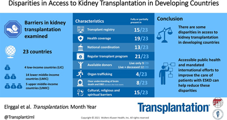 Five former ISN Fellows have collaborated with ISN member Mohamed Elrggal on the paper “Disparities in Access to Kidney Transplantation in Developing Countries,” now published in the journal Transplantation.