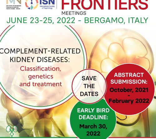 The ISN Frontiers Meeting on the latest developments in diagnosis, disease classification, and genetics, ‘Complement-related kidney diseases: classification, genetics, and treatment,’ will be held from June 23-25, 2022. The meeting is co-hosted with the Mario Negri Institute for Pharmacological Research.