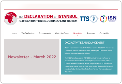 Read the current issue of the Declaration of Istanbul on Organ Trafficking and Transplant Tourism (DICG) newsletter here.