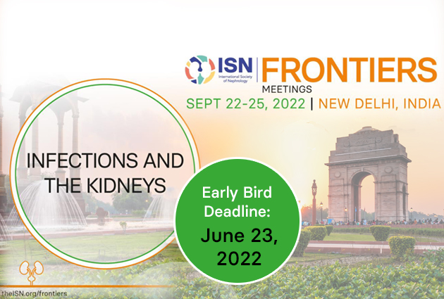 The ISN Frontiers Meeting in New Delhi, India will take place from September 22-25, 2022. The theme is bi-directional relationships between infections and kidney diseases.