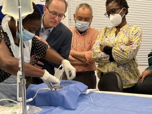 Workshop participants practice catheter insertion overseen by course presenter Bill Smoyer