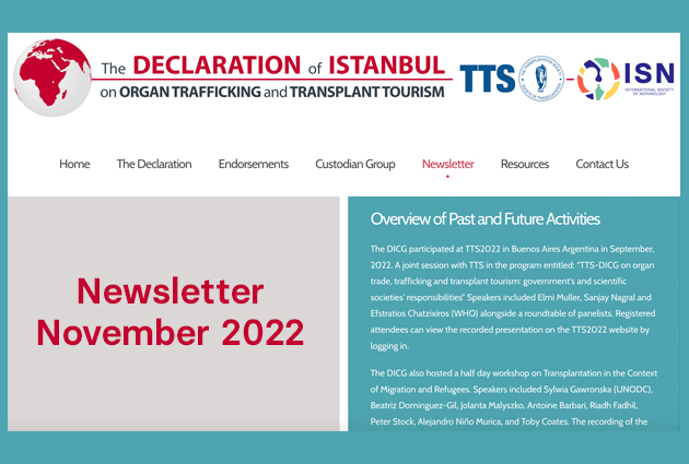Read the current issue of the Declaration of Istanbul on Organ Trafficking and Transplant Tourism (DICG) newsletter here.