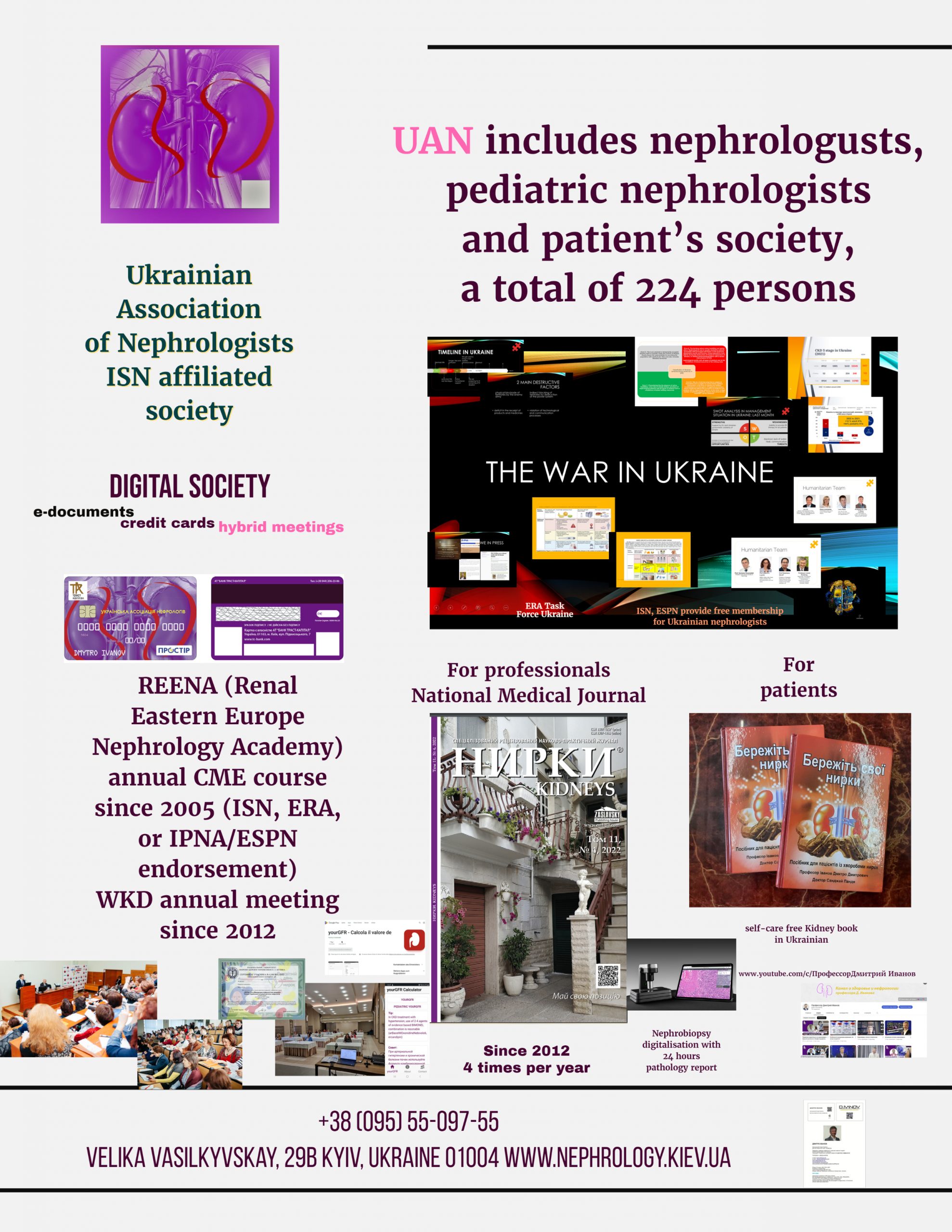 The Ukrainian Association of Nephrologists (UAN) was established in 2019 and became affiliated with the ISN in 2020.