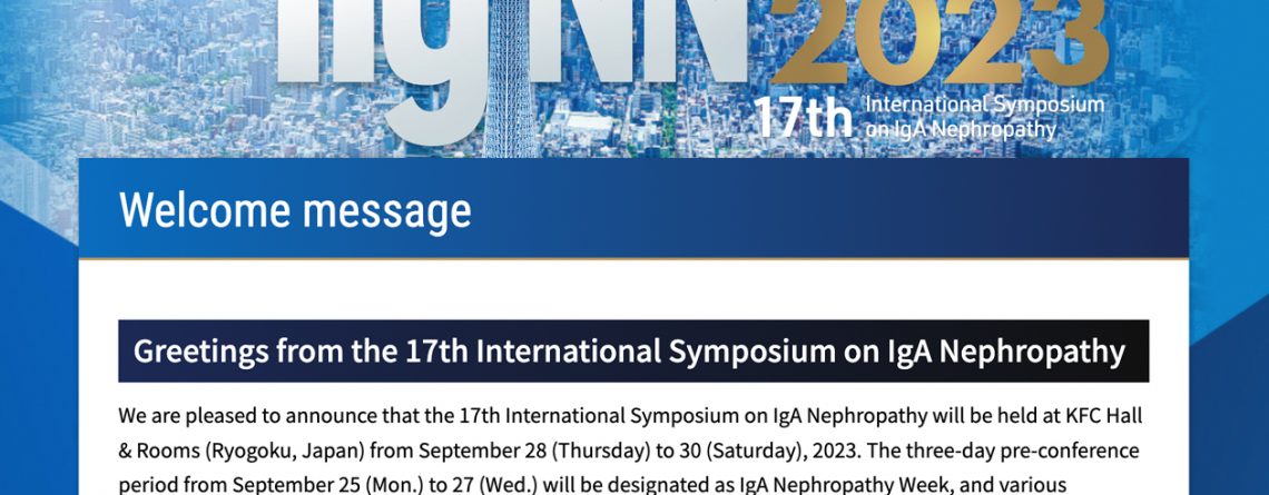 Register for the 17th International Symposium on IgA Nephropathy in Tokyo
