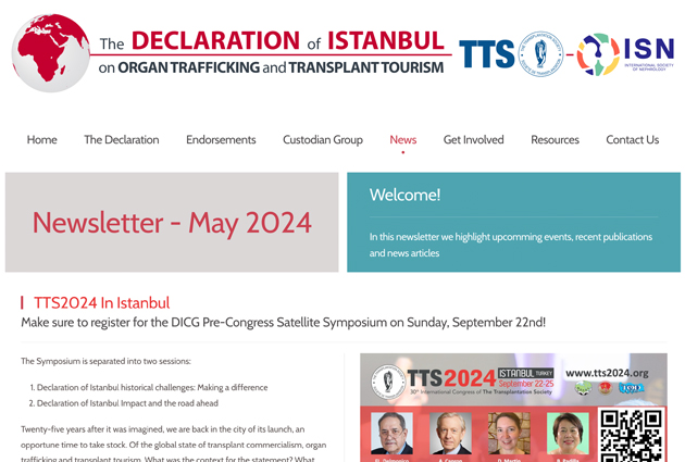 Read the current issue of the Declaration of Istanbul on Organ Trafficking and Transplant Tourism (DICG) newsletter here.