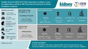 The BKEVER trial compared everolimus (EVR) with mycophenolate mofetil (MMF) in kidney transplant recipients with BK polyomavirus (BKPyV) infection to assess which strategy led to faster viral clearance.
