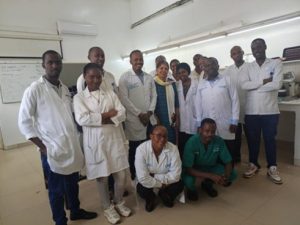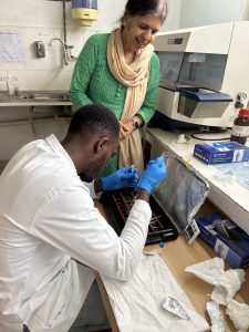 ISN Educational Ambassador Swarnalata Gowrishankar supervises tissue sample analysis at the Kigali University Teaching Hospital in Rwanda