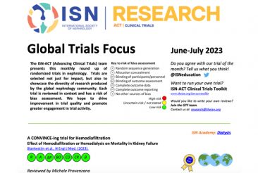 ISN-ACT Global Trials Focus (GTF) editorial team member Michele Provenzano summarizes the design and outcomes of the latest “Trial of the month” featured in ISN-ACT GTF.  Trial of the month:  Stronger together: Finerenone & empagliflozin boost kidney outcomes in diabetes  Finerenone with empagliflozin in chronic kidney disease and type 2 diabetes  Agarwal R, et al., N Engl J...