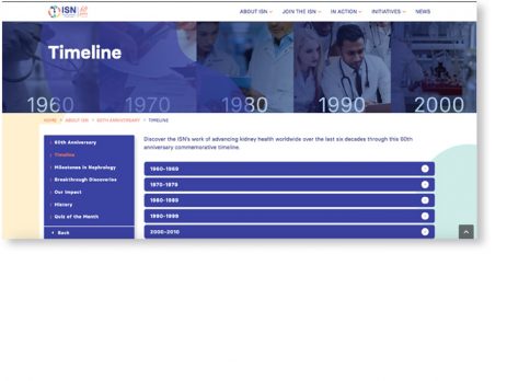 Celebrating ISN’s 60th anniversary, this online timeline spans six decades of ISN’s remarkable history of commitment to advancing kidney health worldwide. Follow ISN’s journey starting as a small community of visionaries with little funding to a global organization dedicated to improving kidney care worldwide through granting programs, education, research, and advocacy. At the advent of its seventh decade,...