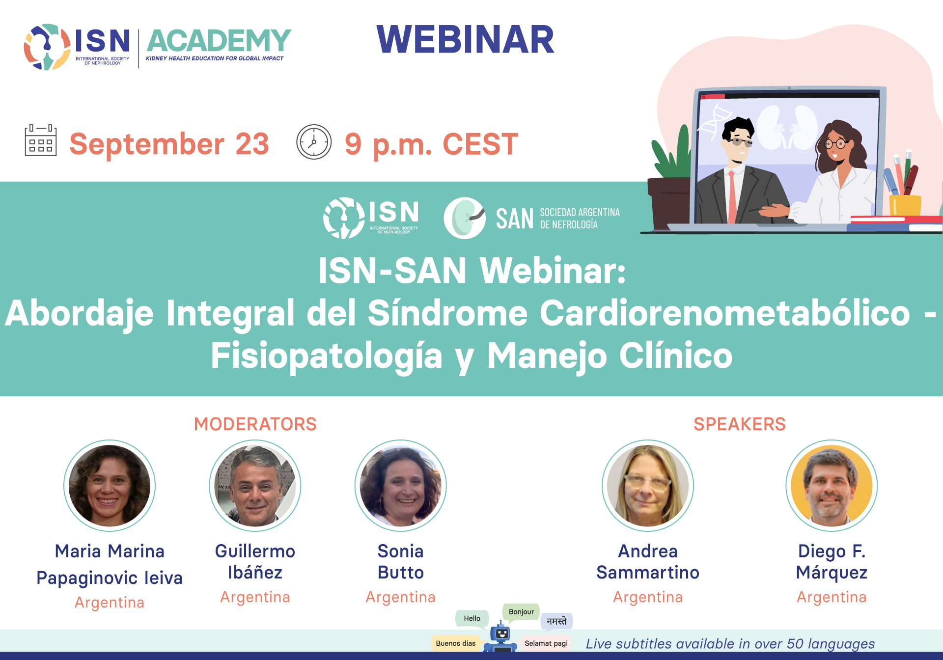 ISN-SAN Webinar: Abordaje Integral del Síndrome Cardiorenometabólico: Fisiopatología y Manejo Clínico
