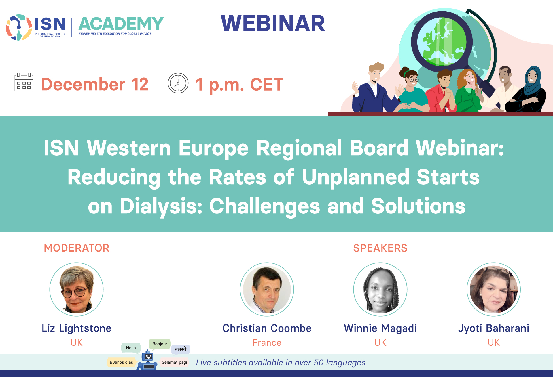ISN Western Europe Regional Board Webinar: Reducing the Rates of Unplanned starts on Dialysis: Challenges and Solutions