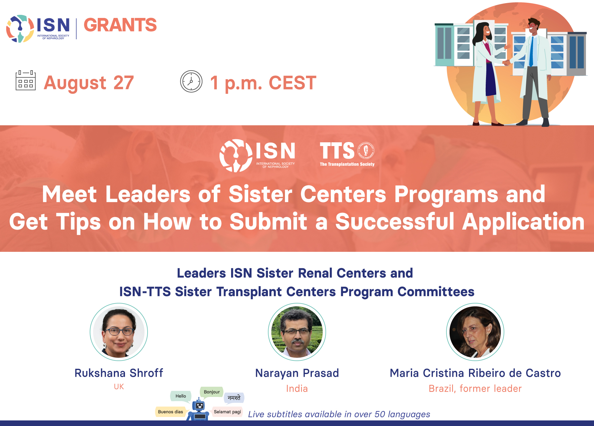 Leaders of the ISN Sister Renal Centers (SRC) Program and ISN-TTS Sister Transplant Centers (STC) Program share insights into how to submit a successful application and participate in these programs!