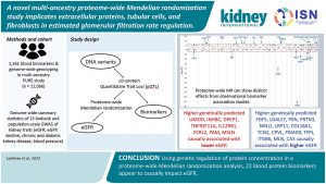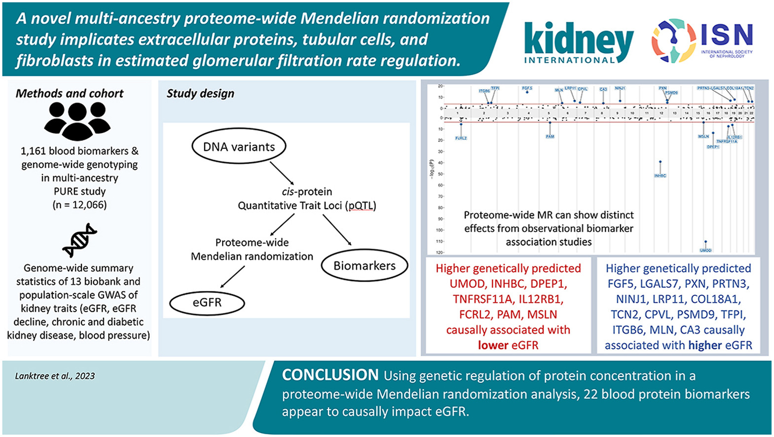 Is there any relationship between biomarkers and the estimated glomerular filtration rate regulation? In this prospective observational study, Lankre et al., searched for genetic changes predictive of the concentration of more than 1000 biomarkers and found that 22 different blood biomarkers changed kidney function. Could these findings be the watershed for novel therapeutic targets?