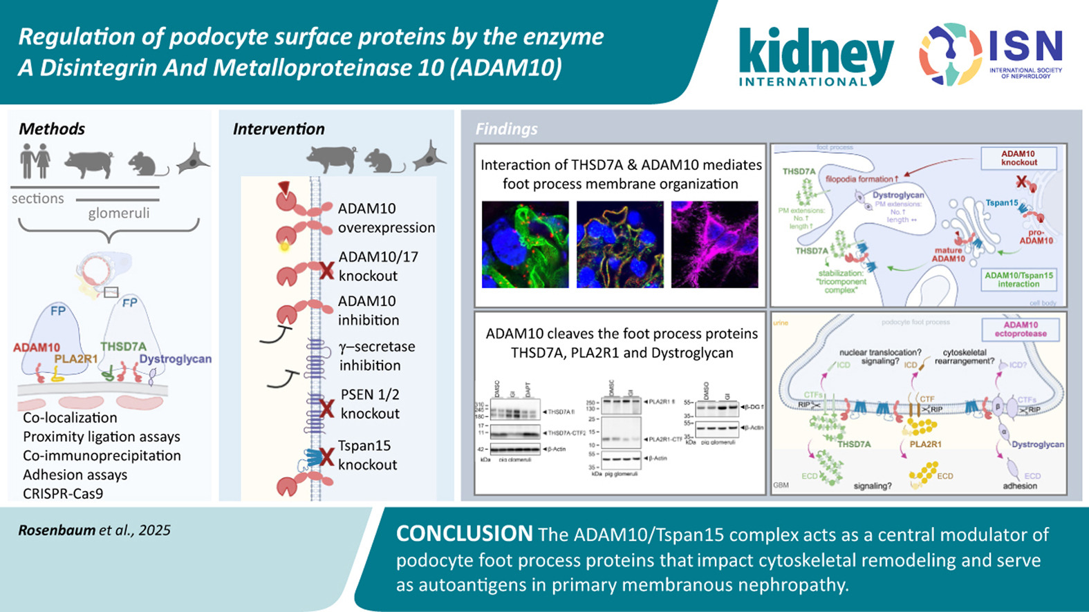The identification of a THSD7A/ADAM10/Tspan15 complex further underscores the therapeutic potential of targeting proteolytic regulation pathways in glomerular diseases.