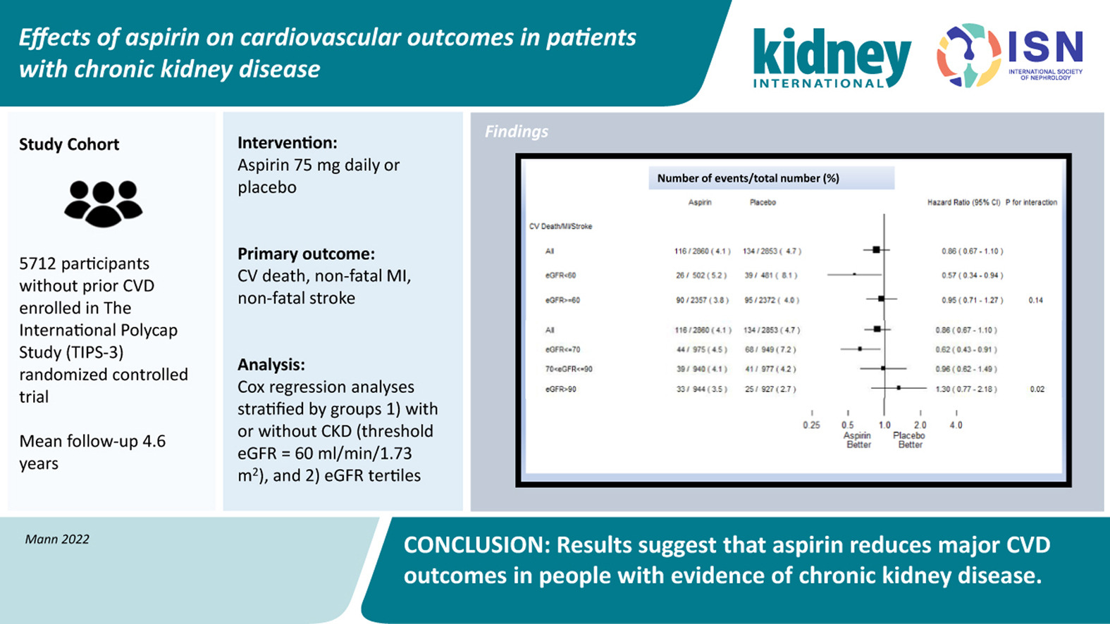 Effects of Aspirin on Cardiovascular Outcomes in Early Chronic Kidney Disease