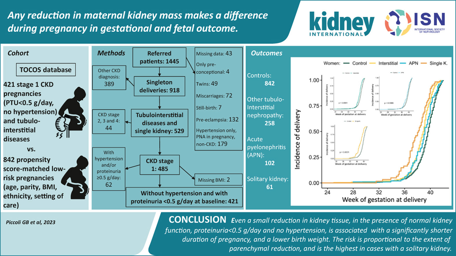 As chronic kidney disease (CKD) becomes more prevalent worldwide, its incidence among pregnant women is also increasing. How often do you encounter CKD in your pregnant patients? Any loss of kidney tissue can adversely affect fetal outcomes, potentially leading to shorter gestational periods. This study found that even without proteinuria, hypertension, or reduced kidney function, loss of kidney tissue is associated with lower birthweight and shorter gestational periods, especially in women with a solitary kidney.