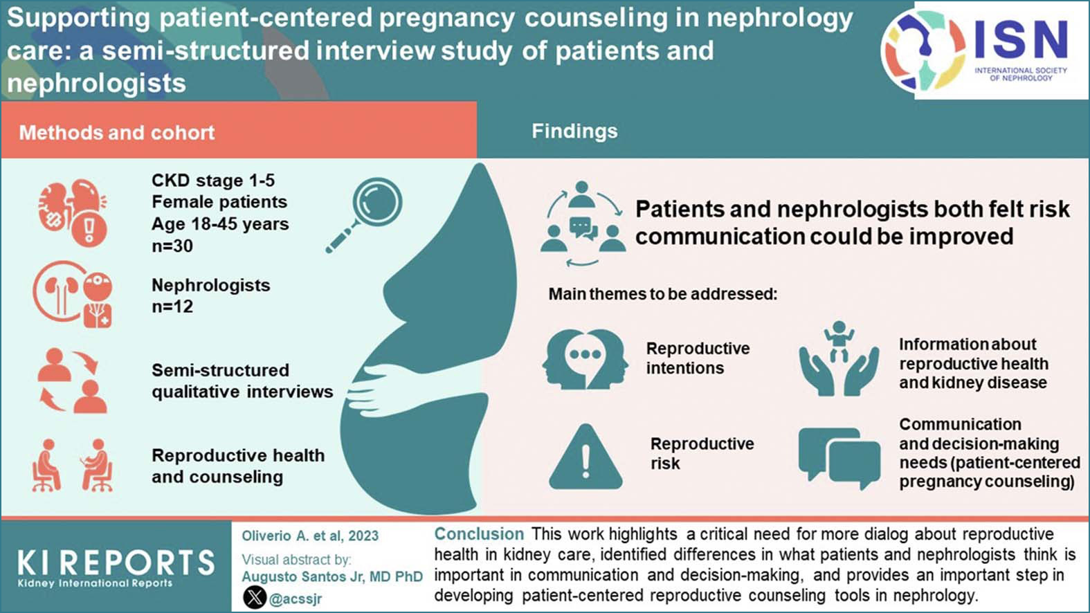 Both patients and nephrologists agree that risk communication needs improvement but differ in their focus—nephrologists emphasize individualized risk estimates, while patients seek a balance of risks, benefits, and management strategies. The findings highlight the necessity for more dialogue about reproductive health in kidney care and suggest that developing patient-centered counseling tools could bridge the communication gap, ultimately improving reproductive health outcomes for women with CKD.