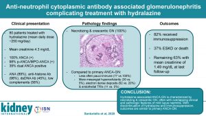 This study is perhaps the largest and most detailed investigation of anti-neutrophil cytoplasmic antibody (ANCA)-associated vasculitis (AAV) occurring in the setting of hydralazine use. Hydralazine has also been associated with lupus-like syndromes, and several of the patients described here seemed to have features of both AAV and lupus. Given the array of effective and possibly less toxic anti-hypertensive medications available today, an informal poll among nephrology colleagues showed considerable variation in use worldwide. We suspect that cases of hydralazine-associated AAV will continue to be found, and it will be important for nephrologists to keep this in mind as we consult our cardiology colleagues.