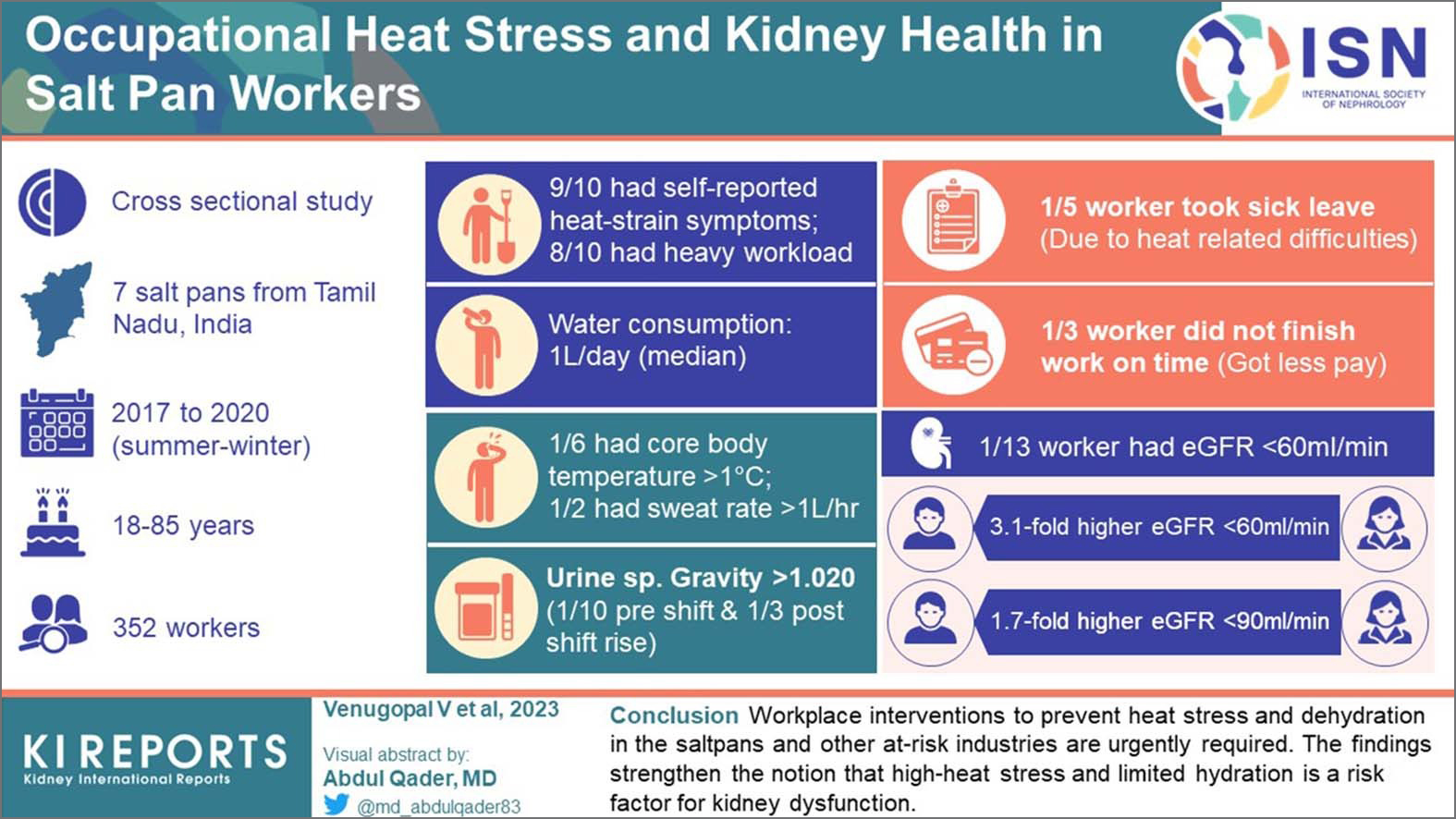 More evidence is available to support the detrimental effects of heat stress on renal function. A study including salt pan workers identified heat strain as a main agrochemical exposure leading to renal insufficiencies.