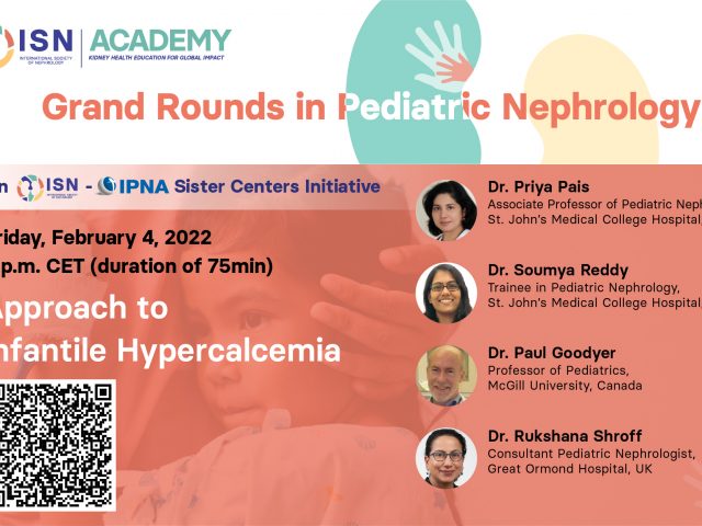 "Approach to Infantile Hypercalcemia" will be held on Friday, February 4, 2022, 3 – 4:15 p.m. Register here. Through two case histories, the session will cover: Differential diagnosis of an infant with hypercalcemia Hypercalcemia evaluation and the role of genetic testing Treatment of infantile hypercalcemia The Grand Rounds series is a case-based, online teaching program in pediatric nephrology to support...
