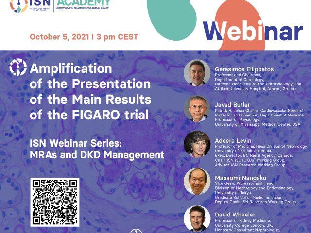 The webinar, "Amplification of the presentation of the main results of the FIGARO trial," will take place at 3 p.m. on October 5. Gerasimos Filippatos, Greece, Javed Butler, USA, and Adeera Levin, Canada, will examine the results of the FIGARO-DKD study and assess its implications for clinical practice in nephrology and cardiology: Trial design and main...