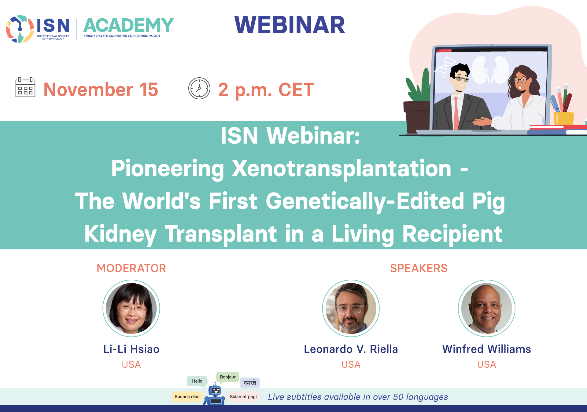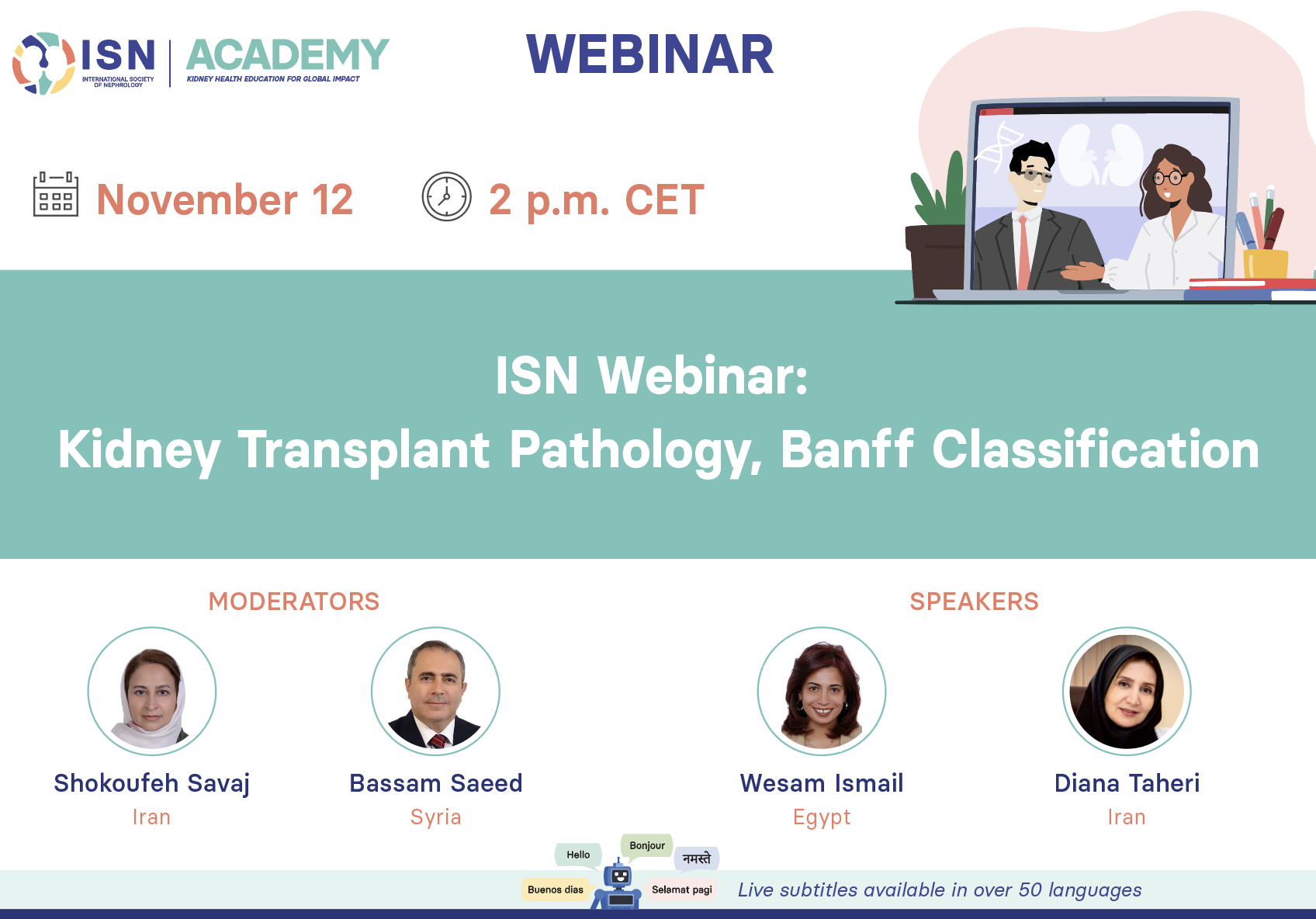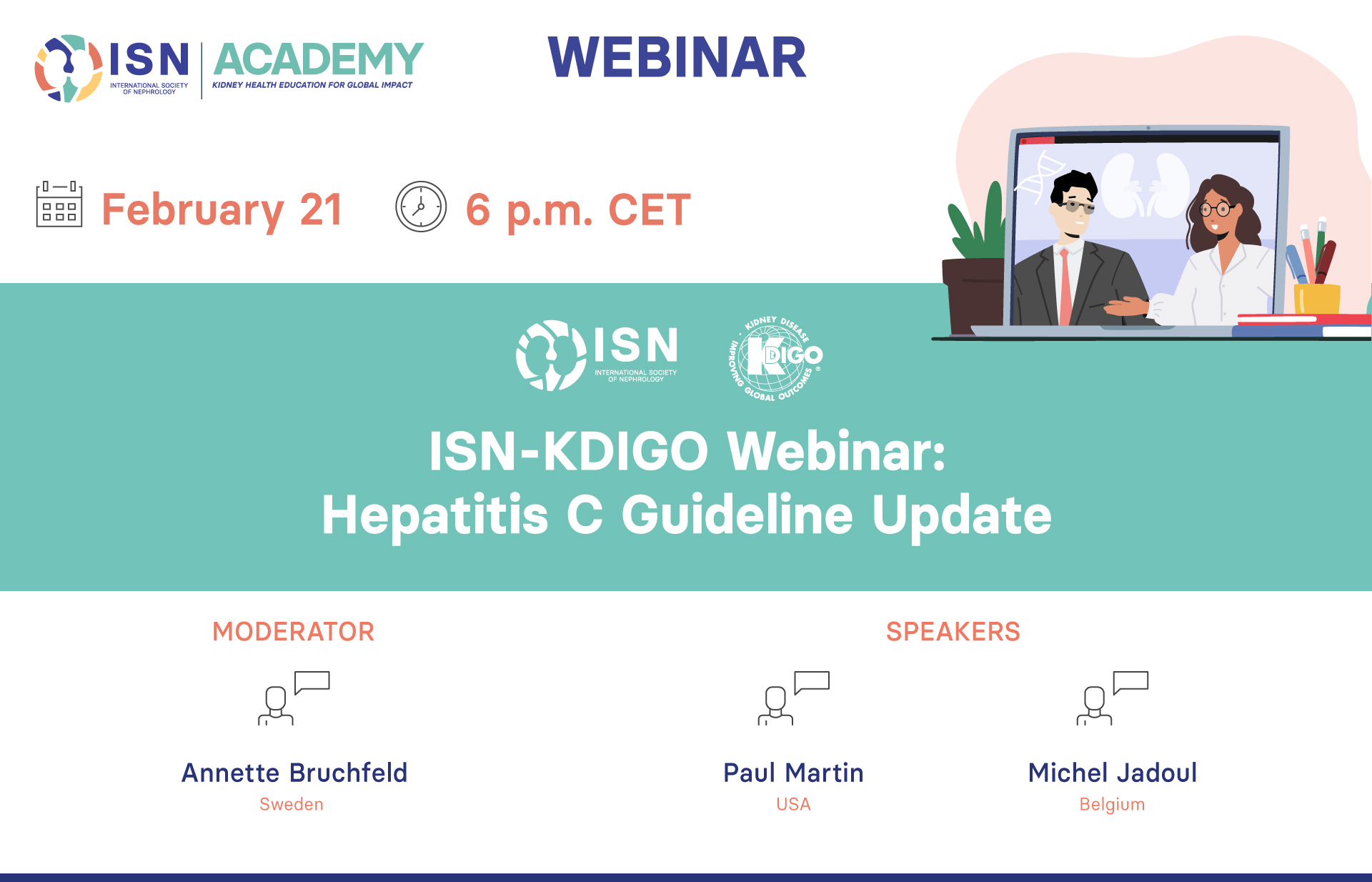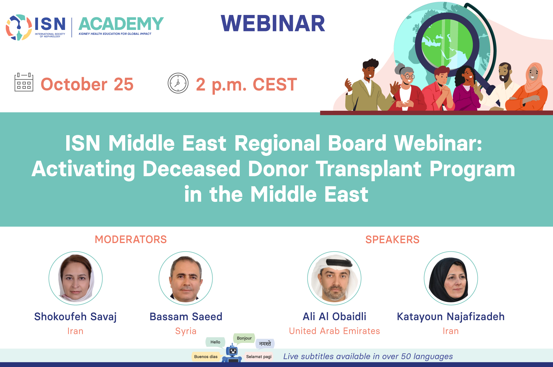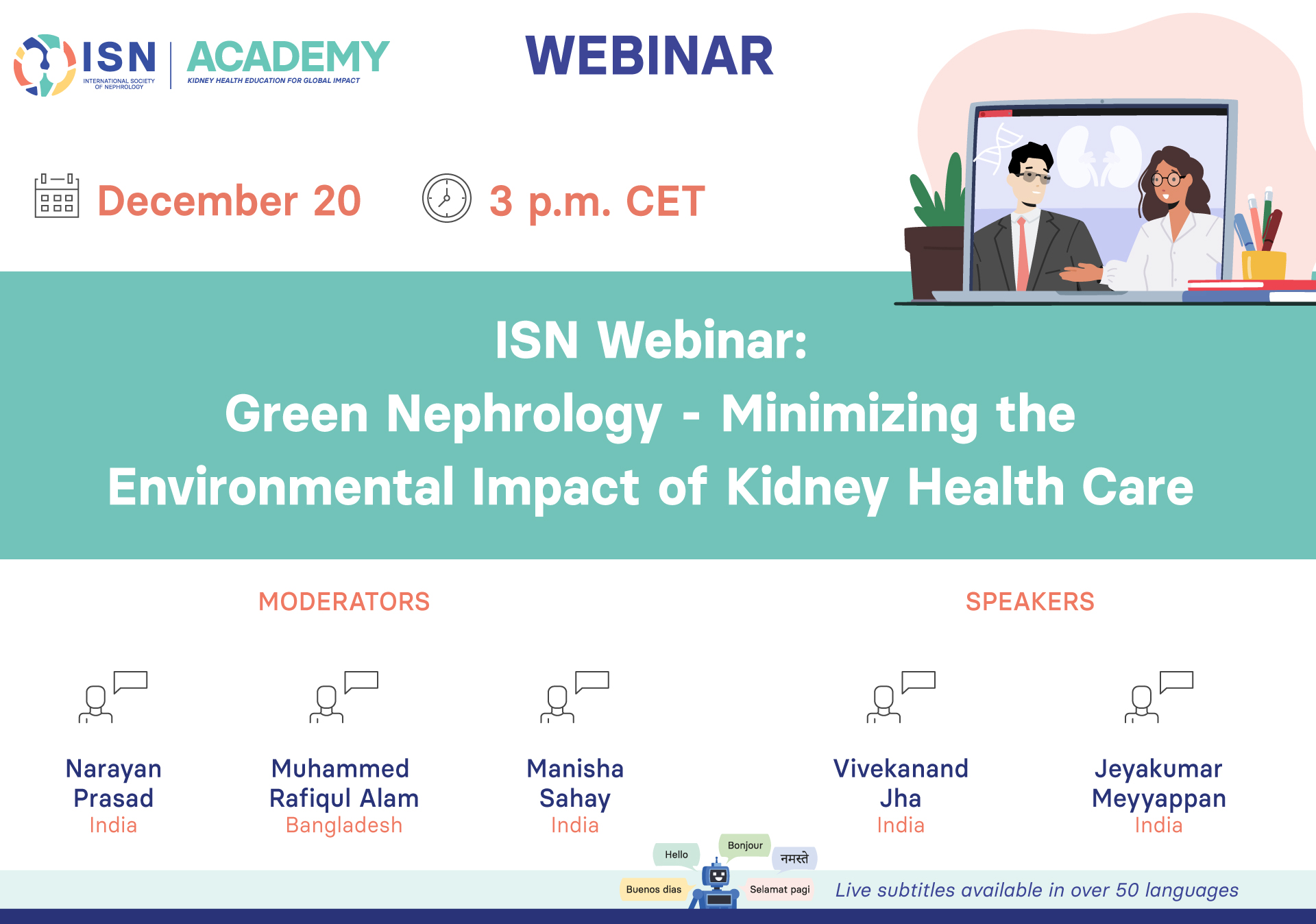 The ISN provides regular live and recorded webinars in several languages covering a range of topics relevant to the nephrology community.