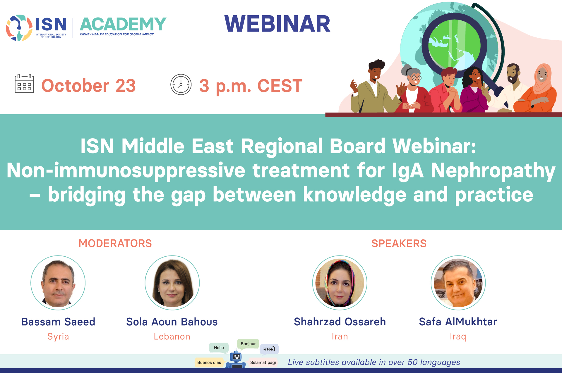 ISN Middle East Regional Board webinar: Non-Immunosuppressive treatment for IgA Nephropathy – bridging the gap between knowledge and practice