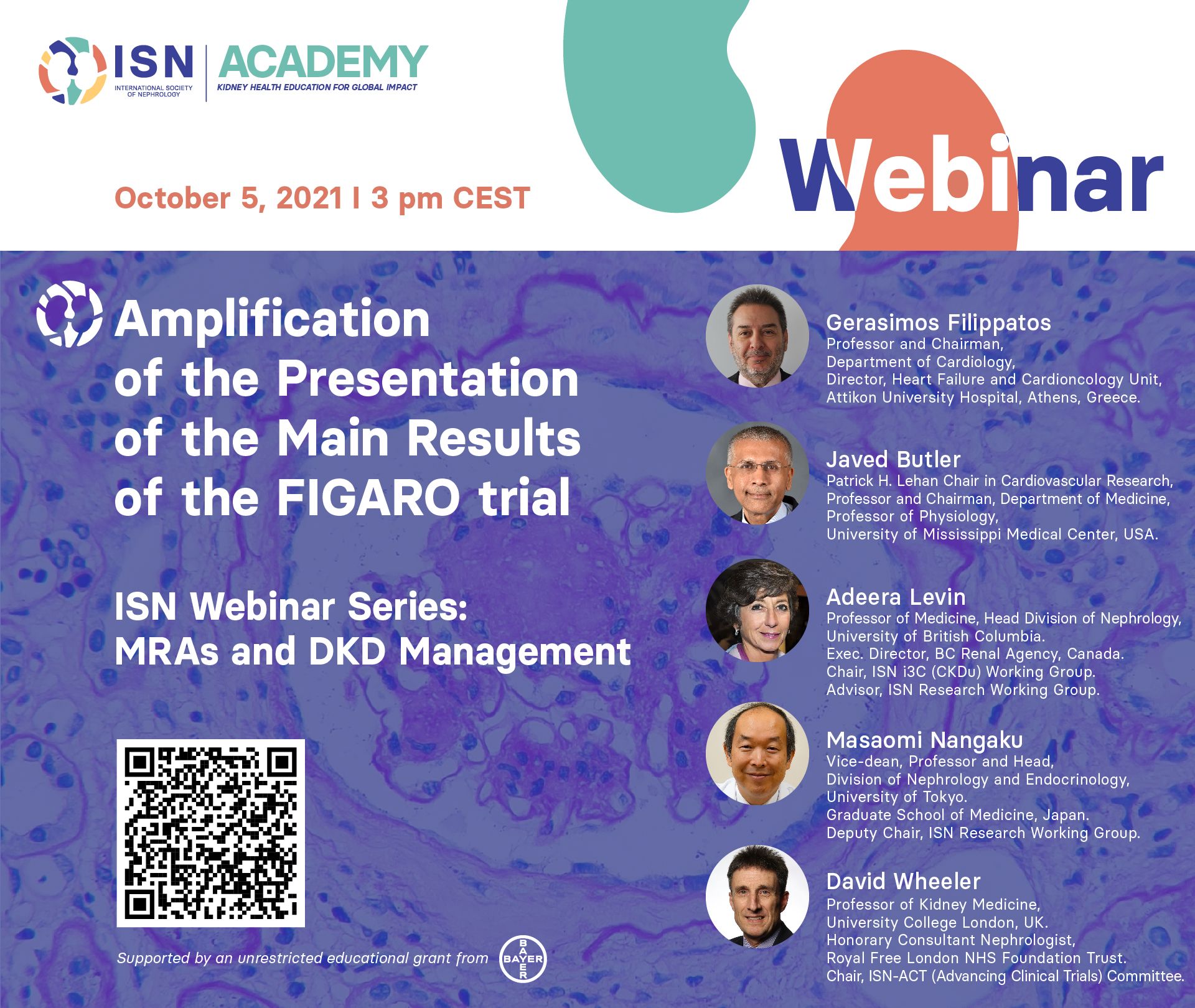 FIGARO-DKD is a randomized, double-blind, placebo-controlled, parallel-group, event-driven Phase III study that investigated finerenone versus placebo in patients with CKD and T2D. FIGARO-DKD included more patients with earlier stage CKD and type 2 diabetes compared with FIDELIO-DKD. The study showed finerenone significantly reduced the composite risk of time to first occurrence of cardiovascular (CV) death or non-fatal CV events (myocardial infarction, stroke, or hospitalization for heart failure). This webinar reviews the results of FIGARO-DKD and discuss its implications for