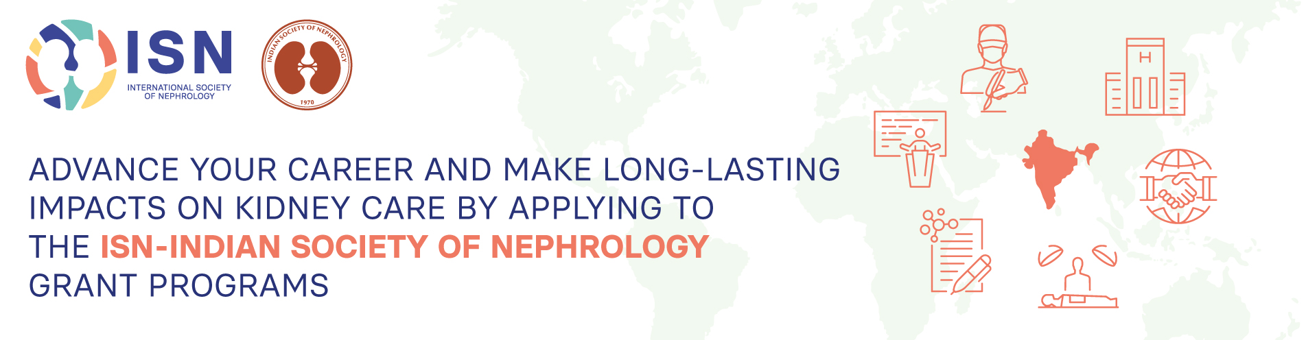 The jointly supported granting programs by the ISN and the Indian Society of Nephrology cover but are not limited to the following: Fellowships, Sister Renal Centers, Educational Ambassadors, Scientific Writing Course, and CME.