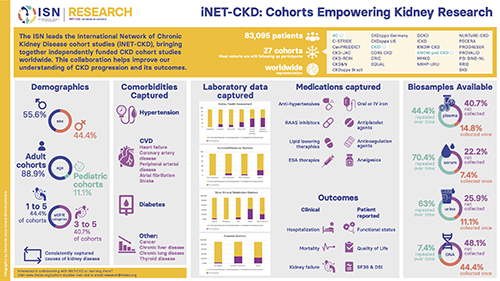 The ISN International Network of Chronic Kidney Disease cohort studies (iNET-CKD) is one-of-a-kind. It is an international network of existing, independently funded Chronic Kidney Disease (CKD) cohort studies, that facilitates the understanding of CKD progression and its consequences worldwide.