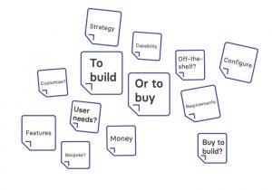 The first step in deciding between the various options is to find out what is available for purchase and how close those come to fulfilling your needs. It is very unlikely that a product will meet all of your requirements, so some customization is likely to be needed. The time and cost of making these adjustments must taken into account. It is also important to factor in the cost of any license for and maintenance of the product. So, while an off-the-shelf solution may have lower initial costs, running costs over the longer term may be higher. Off-the-shelf solutions have advantages, too, however, such as having already been tried and tested, taking less time to deploy, having existing manuals and resources, and having a central team to provide training and support. Before purchasing your product, you may find it useful to speak to others who have worked with the developer, used the product, and experienced the support.