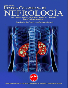 Currently Colombia and Latin America in general are the epicenter of the SARS CoV2 / COVID-19 pandemic. In Colombia, there are more than 3,000 cases of kidney disease in children, 45,000 people with stage 5 CKD or requiring kidney replacement therapy, about 7,000 people with kidney transplants. Approximately 56% correspond to adults over 60 years of age with two or more chronic pathologies. 70% of cases of COVID-19 infection occur in people with cardiovascular disease, high blood pressure, diabetes and chronic kidney disease, and about 90% of deaths occur in people over 60 years with multiple pathologies. Circumstance that is exacerbated by the very dynamics of care, the periodicity of dialysis, the need to travel frequently to dialysis units, the limitations of literacy in health to meet the isolation and social distancing standards, the group inevitable of patients during dialysis shifts, in addition to the human, social and economic repercussions of the pandemic that further increase the risk of viral transmission.