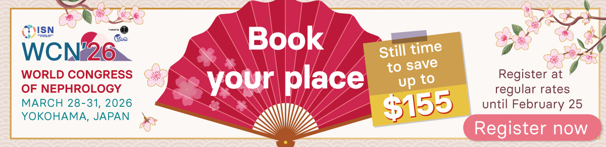Promotional materials Social media visuals WCN’26 save the date stories visual WCN’26 register early bird stories visual Video Vertical banners WCN’26 save the date – 160×600 banner WCN’26 register regular rates banner – 160×600 banner WCN’26 register regular rate vertical eblast banner Horizontal banners WCN’26 save the date – 728×90 banner WCN’26 save the date horizontal eblast banner WCN’26 register regular rate 728×90 banner WCN’26 register regular rate eblast horizontal banner Exhibiting horizontal banner Industry symposium horizontal banner Square banners WCN’26 save the date – 300×250 WCN’26 register early bird banner (300×250) Other documents WCN’26 save the date promo slide (PPTX) WCN’26 regular fee promo slide (PPTX) WCN’26 Save the date A4 Desk Display (PDF) WCN’26 announcement A6 postcards (PDF) WCN’26 logo – condensed (jpg) WCN’26 logo – condensed (png) WCN’26 logo – long version (jpg) WCN’26 logo – long version (png) Help us spread the word about WCN and share all about the congress on your preferred channels. Make sure you also follow us on social media and subscribe to our WCN newsletter so that you won’t miss any of the action! Subscribe to receive the latest news about WCN Name Email Address * Choose your interests ISN Insight Webinar invitations ISN Advocacy WCN24 information ISN Grants ISN Journals ISN Research ISN Education * indicates required Follow us on social media