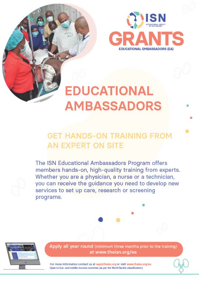 Renal centers around the world can apply to the Educational Ambassadors (EA) Program to receive expert guidance and hands-on training to advance new initiatives, skills or services, and community-based research or screening programs.