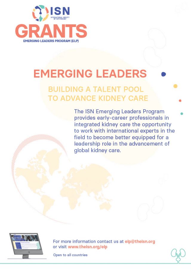 The ISN-ELP provides early-career professionals in integrated kidney care the opportunity to work with international experts in the field to become qualified for a leadership role in the advancement of global kidney care.