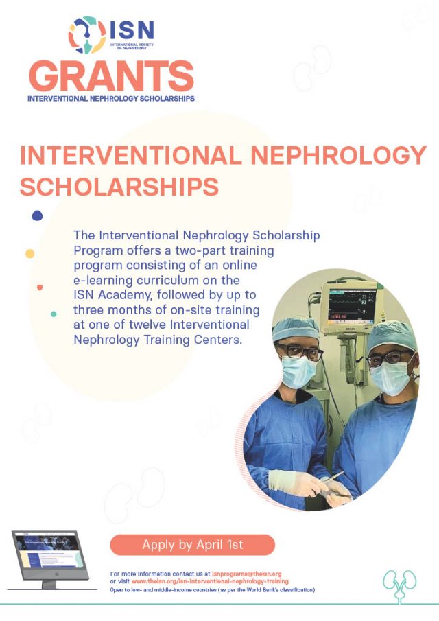 Applications for ISN Interventional Nephrology Scholarships are now open for scholars to undertake training at host centers from August 2022 to February 2023.