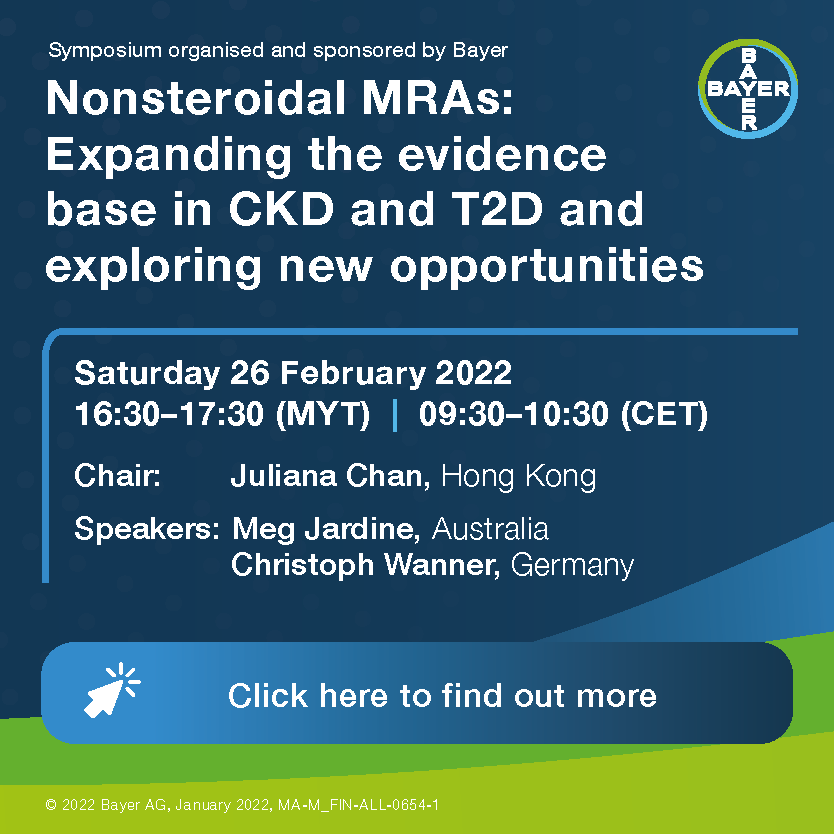 The 2022 World Congress of Nephrology is hosted in a virtual format. All registered delegates will have access to the virtual pre-congress courses (additional fee applies) and sessions (February 21-24), congress plenaries, scientific sessions, networking events and a lot more (February 25-27). Full access remains available on-demand for three months after the congress. A personalized letter with information to access the WCN’22 virtual platform will be sent to you in the week prior to the start date of the congress. Further details on the virtual format are available here.
