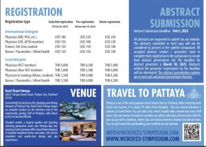 Participation to the satellite symposium is not included with WCN’23 registration. A separate registration for this meeting is required. For more information, download the brochure here or visit the Satellite Meeting web pages on www.wcn2023-satellite.com.